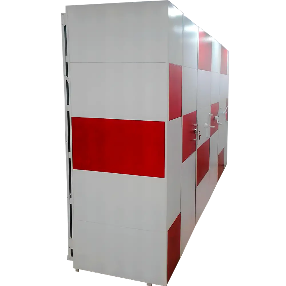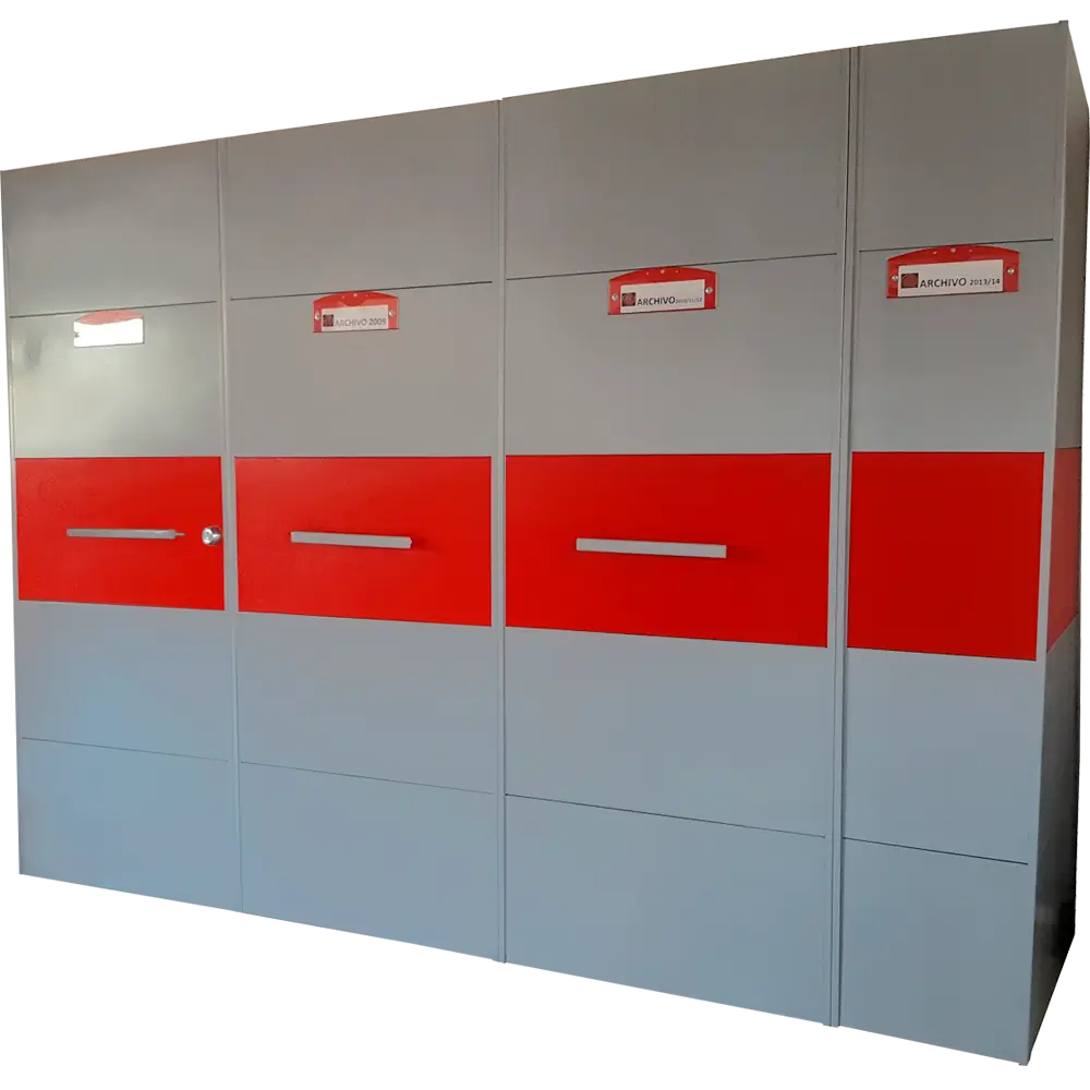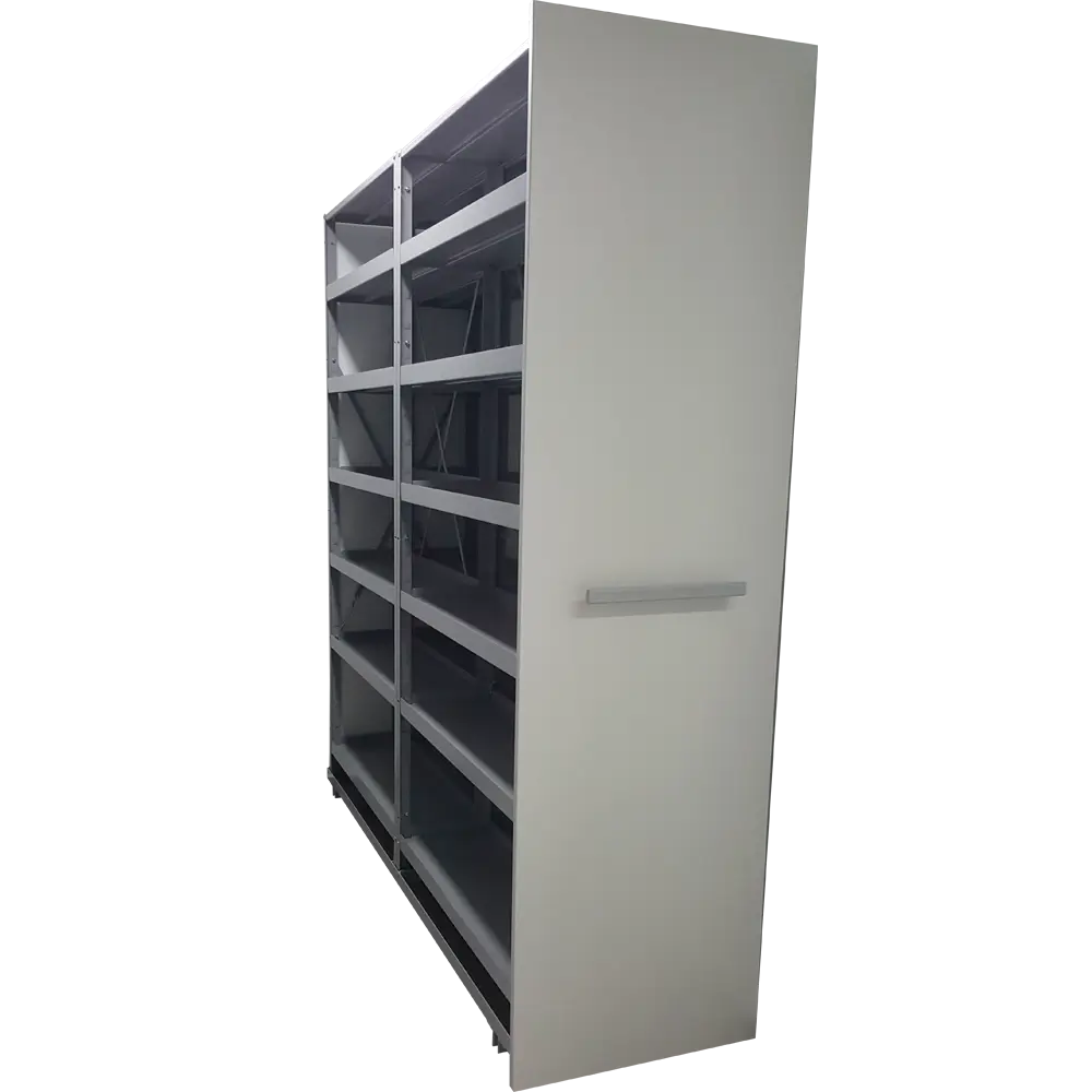 Almacenamiento sobre estantes móviles para optimizar el uso del espacio disponible.